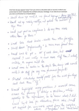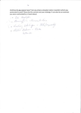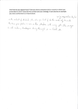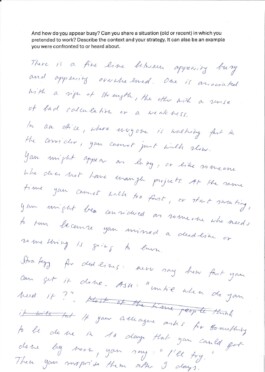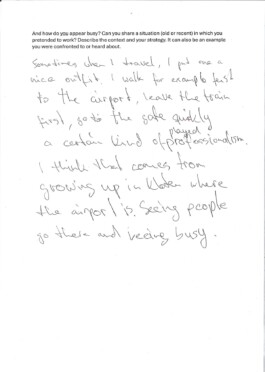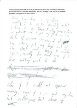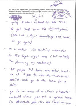 Documents of the participants at Arnaud Wohlhausers workshop How to appear busy.